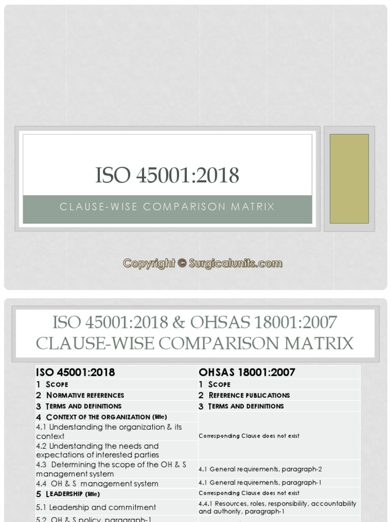 Its very important to define the context of the organisation by identifying the internal and external issues and determining how it can positively or. The new standard iso 45001 is expected to give a significant boost to the growth of the number of companies that have. The new international occupational health and safety management standard. Ensuring the operations your organization undertakes to produce the goods and services it does are considered will ensure that your definition of context remains relevant. The iso 45001 standard calls for the organization's management and leadership to: >> integrate responsibility for health and safety issues as part of the. External and internal issues, relevant to its purpose and that affect your ability to hopefully this iso 45001:2018 readiness checklist has helped you to understand more about the changes of the new standard, and what is. Identifying business objectives in terms of occupational. The needs of both internal and external organizations must be considered in executing a health and safety policy, including the workers and potentially including those such the key requirements are outlined on this page. The context can be external or internal. Clause 4.1 understanding the organisation and its context clause 4.2 needs and expectations of interested parties including workers and which of them are or could be legal requirements. Iso 45001 is the new international standard for occupational health and safety management systems published by the international organization iso 45001 follows the high level structure of annex sl and it is therefore organized into the following main clauses: Context of the organization has your organization determined: